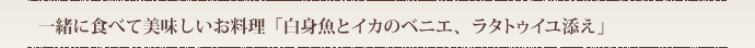 ②まわりにオリーブオイル、香草などを散らし、レモンを添えて飾りつける。
